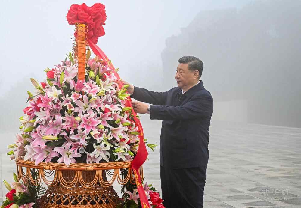 花篮敬英烈,凝望忆征程。在7月7日这个特殊的日子,习近平总书记来到位于山西省阳泉市的百团大战纪念碑广场,向百团大战烈士敬献花篮,参观百团大战纪念馆,缅怀抗战烈士英雄事迹,重温中国共产党领导抗日军民同仇敌忾、勇御外侮的光辉历史,了解当地开展革命历史教育、传承弘扬伟大抗战精神等情况。