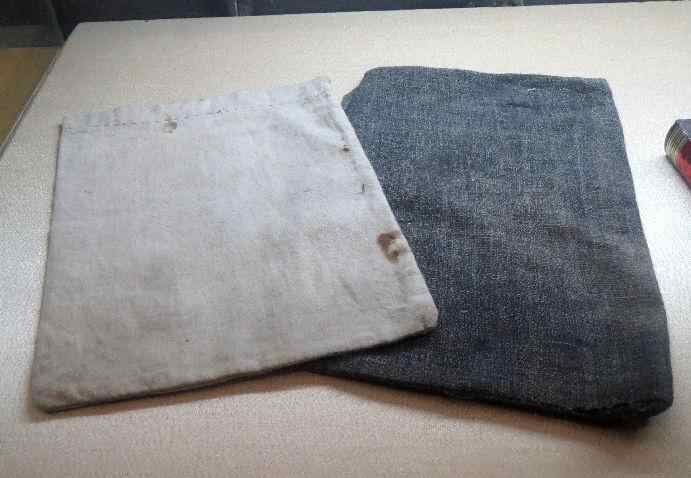 江淮银行金库人员为保护金库内的金条,用米袋、被单自制的钱币袋。新四军纪念馆供图