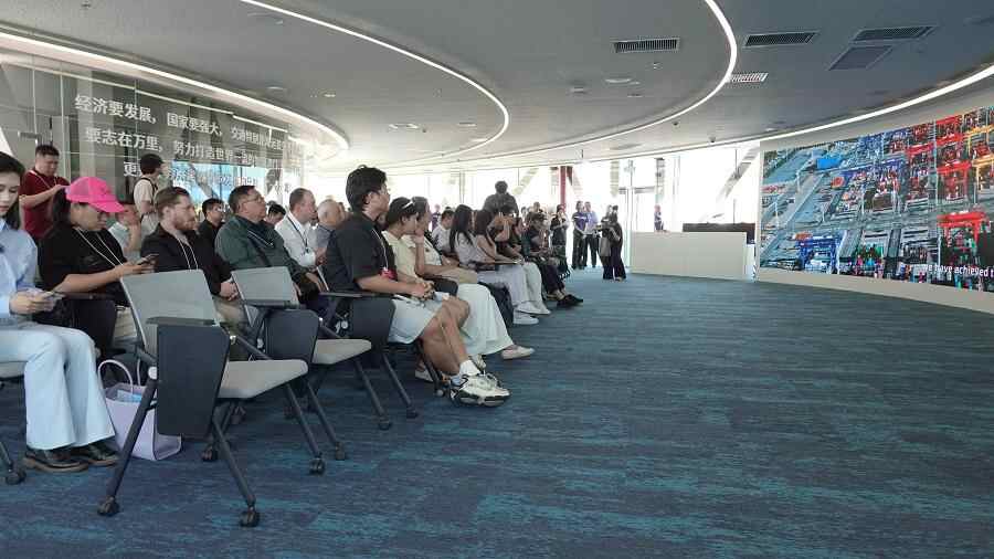 上午,嘉宾一行乘车前往天津港参观。作为全球首个“智慧零碳”码头,天津港以其高效、智能、绿色的运营模式,成为中国港口转型升级的标杆。码头现场,自动导引车(AGV)在无人驾驶的精准调度下有序搬运集装箱,岸桥操作实现全流程智能化,令人印象深刻。