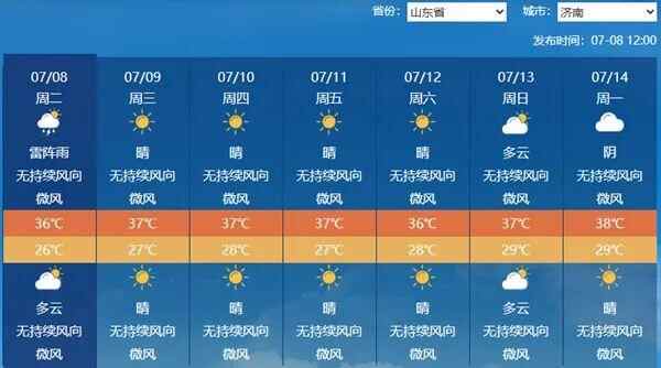 大城市中,济南未来7天高温全勤,天津、石家庄、西安、郑州10日后将会出现连续5至6天的高温,太原、兰州、银川13日至15日也将出现高温天气。同时,不少地方夜间气温还会不断上升,济南、郑州最低气温将逼近30℃,夜温之高7月少见,防暑降温全天不能松懈。