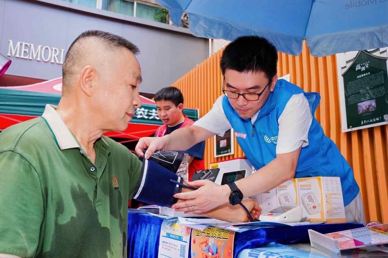 不远处的广州移动量血压服务台前,更是排起了温馨的长队。老人们相互招呼着有序等候,志愿者们一边细致测量,一边根据数值轻声叮嘱:“张阿姨您血压稍高,记得少盐多散步”“李伯这读数挺稳,保持住就好”,一句句平实的健康指导,像暖阳般熨帖人心。