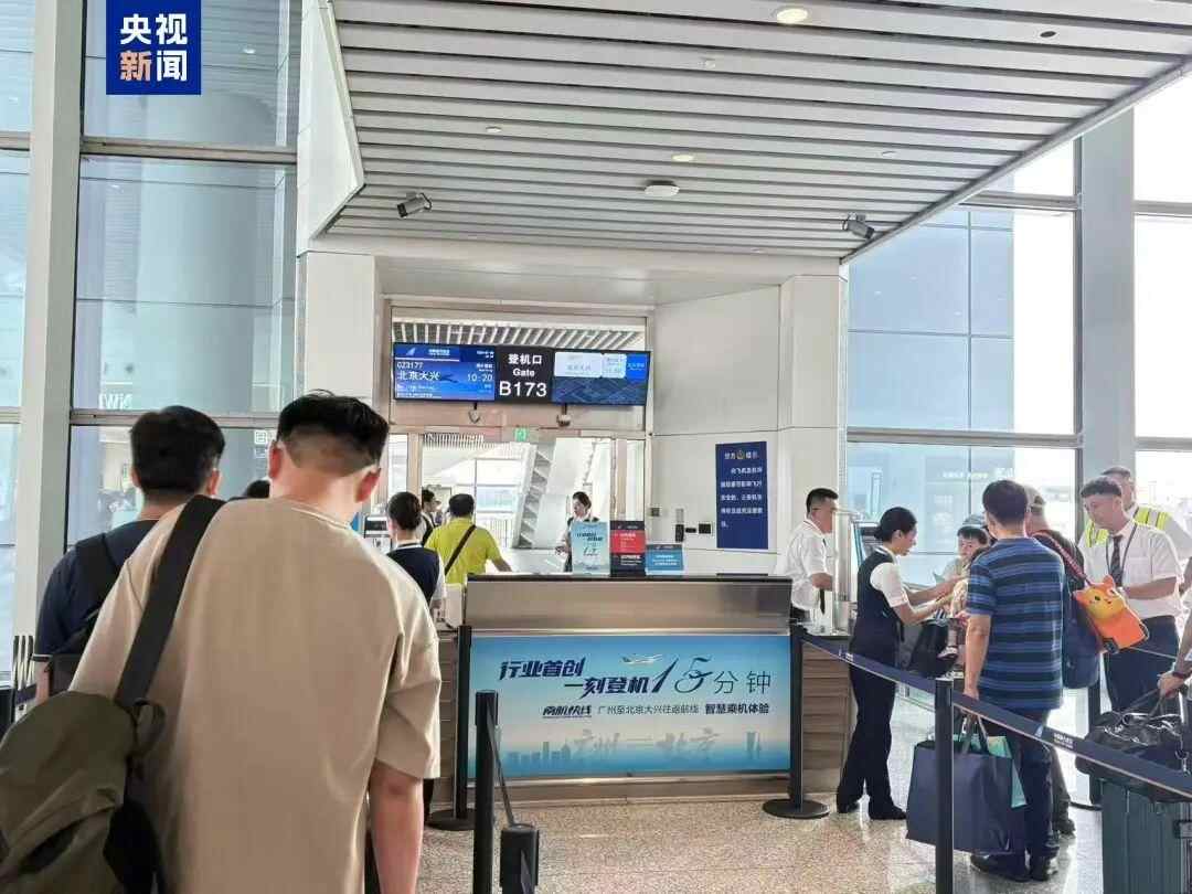 7月8日,记者在广州白云国际机场了解到,今天起,广州往返北京大兴的南航航班全面取消值机截载时间,推出“一刻登机”服务。该举措打破了国内民航业普遍需提前30至40分钟关闭值机柜台的惯例,减少传统值机截载时间对旅客的限制,为民航业内首创。