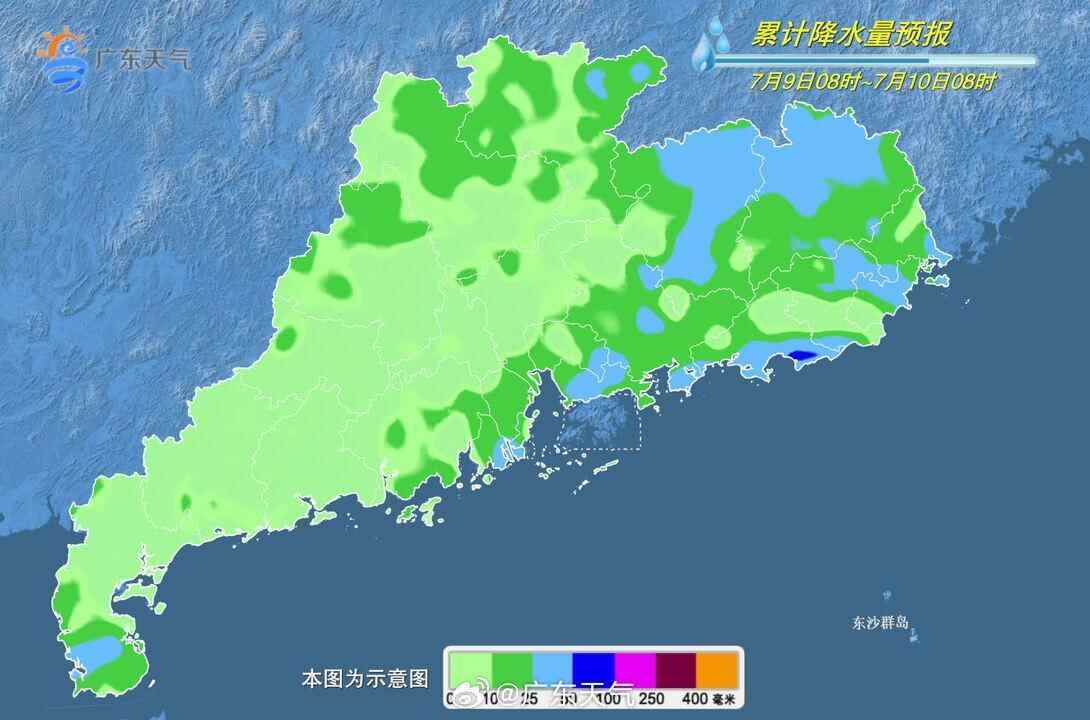 9日,南部沿海和粤北部分市县多云间阴天,有强雷雨,雷雨时局地伴有8级左右短时大风,其余市县多云,有分散(雷)阵雨,局部暴雨。