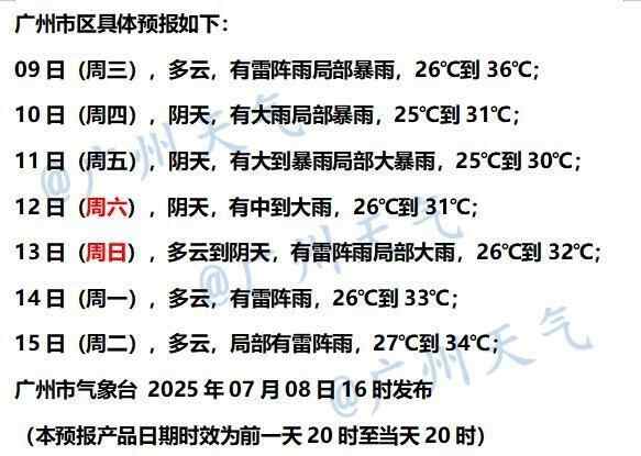 广州方面,9日高温炎热持续,户外活动、施工作业要格外注意防暑防晒,及时补水;午后要小心雷雨袭扰。10-12日,受“丹娜丝”残余环流和季风影响,将有大到暴雨局部大暴雨,高温有所缓解。小伙伴们外出注意带晴雨两用伞,晾晒也要留意变天。