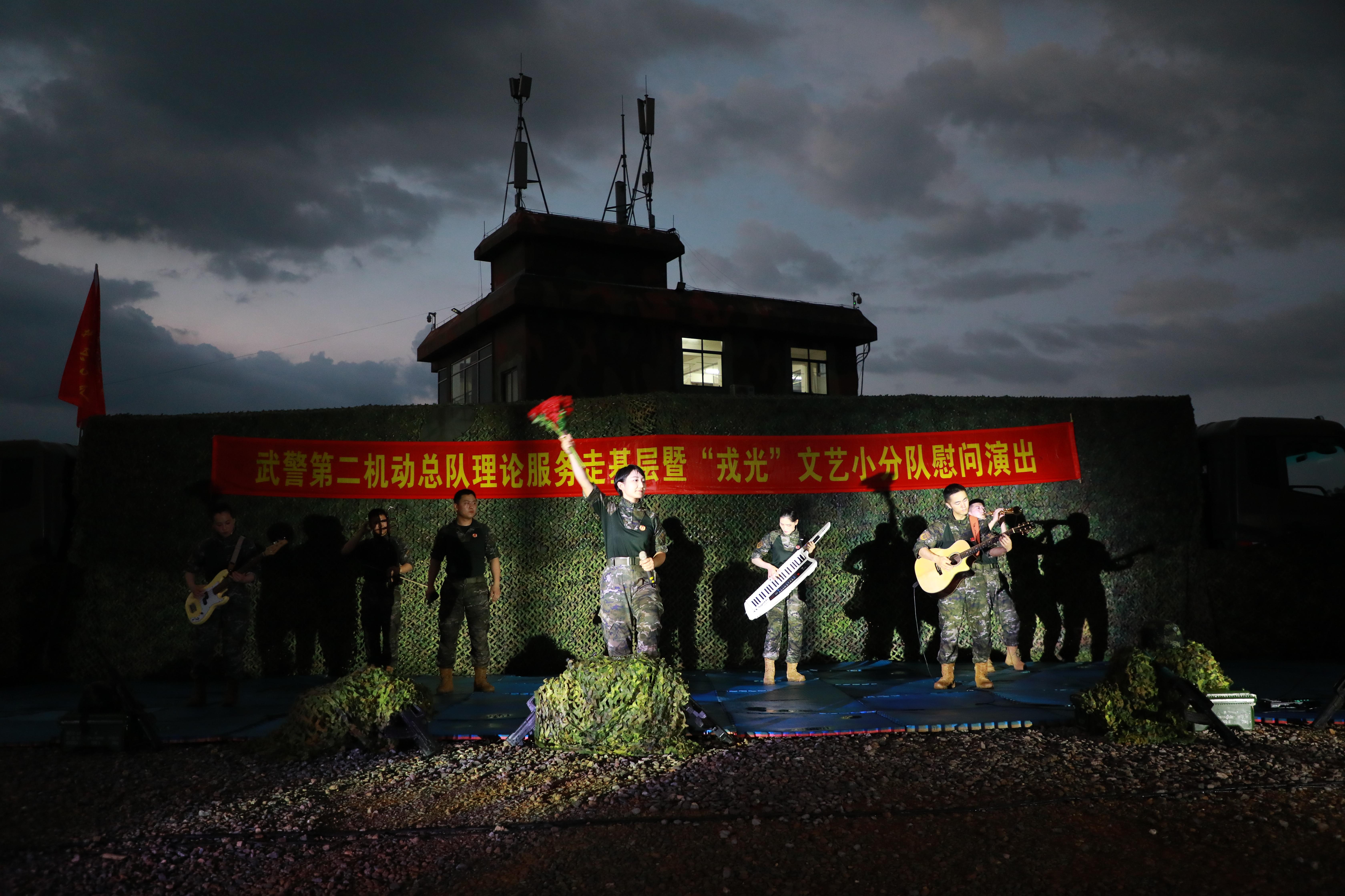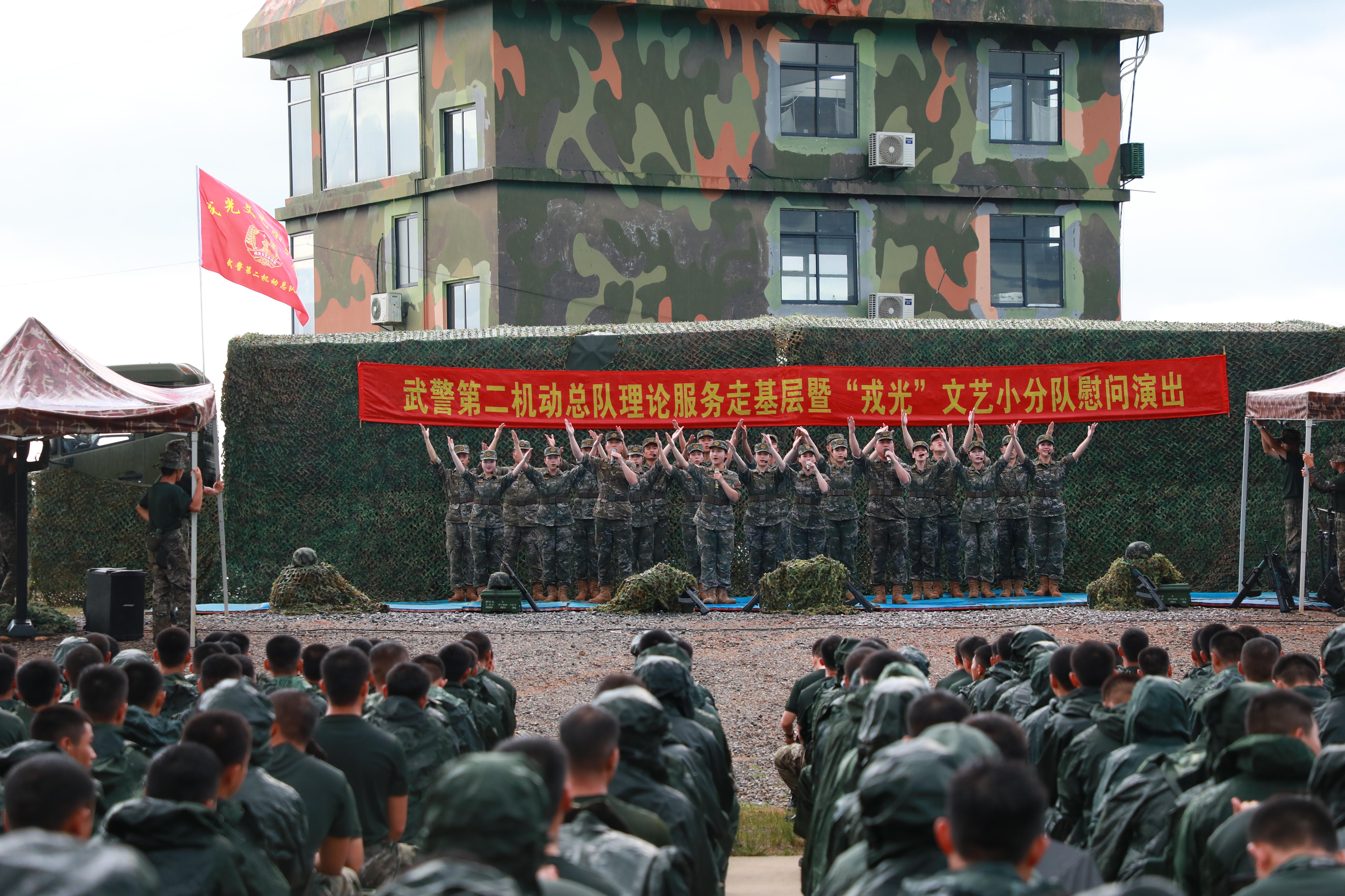 近日,武警第二机动总队“戎光”文艺小分队深入基层、奔赴战位,坚持将视角和触角聚焦基层强军实践,秉持“兵写兵、兵演兵、兵颂兵”的创作理念,创排了一批具有鲜明时代印记,浓郁战味儿、兵味儿的文艺作品,为官兵奉献了一场精彩的慰问演出。