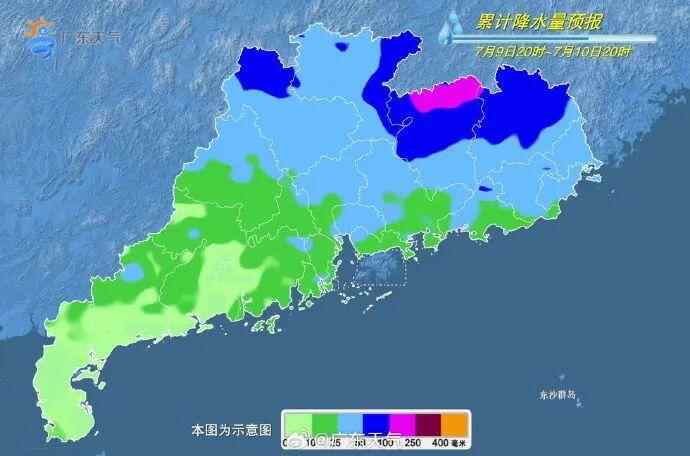 10日,梅州、河源阴天,有暴雨局部大暴雨,韶关东部、粤东市县阴天到多云,有大到暴雨局地大暴雨,珠江三角洲市县多云到阴天,有中到强雷雨局地暴雨,其余市县多云,有雷阵雨,雷雨时局地伴有8~10级短时大风。