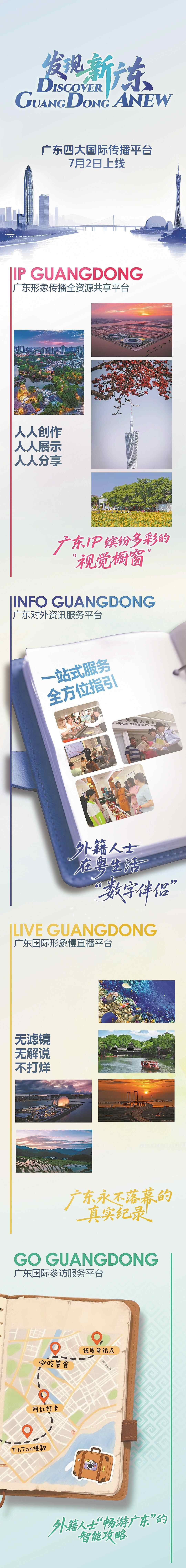 7月2日,由广东省委宣传部主办的IP Guangdong形象传播全资源平台、INFO Guangdong对外资讯服务平台、GO Guangdong国际参访服务平台、LIVE Guangdong慢直播平台等四大国际传播平台正式上线。2025《Go Guangdong够广东》形象片也同步发布。
