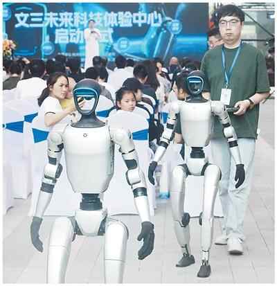 5月4日,宇树科技的人形机器人在浙江杭州巡展。