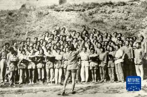 1939年,冼星海指挥鲁艺学员排练《黄河大合唱》。新华社发(延安文艺纪念馆供图)