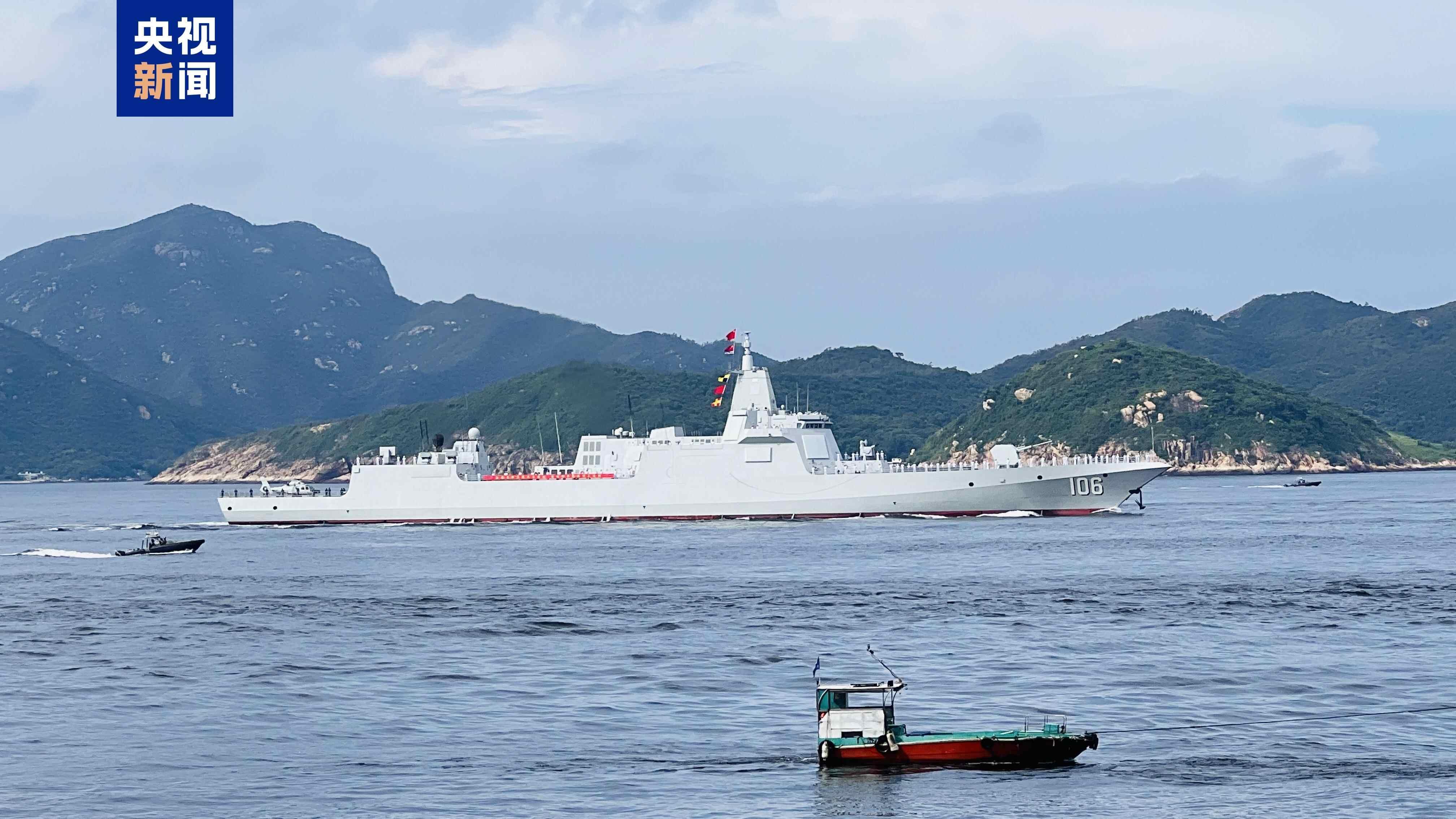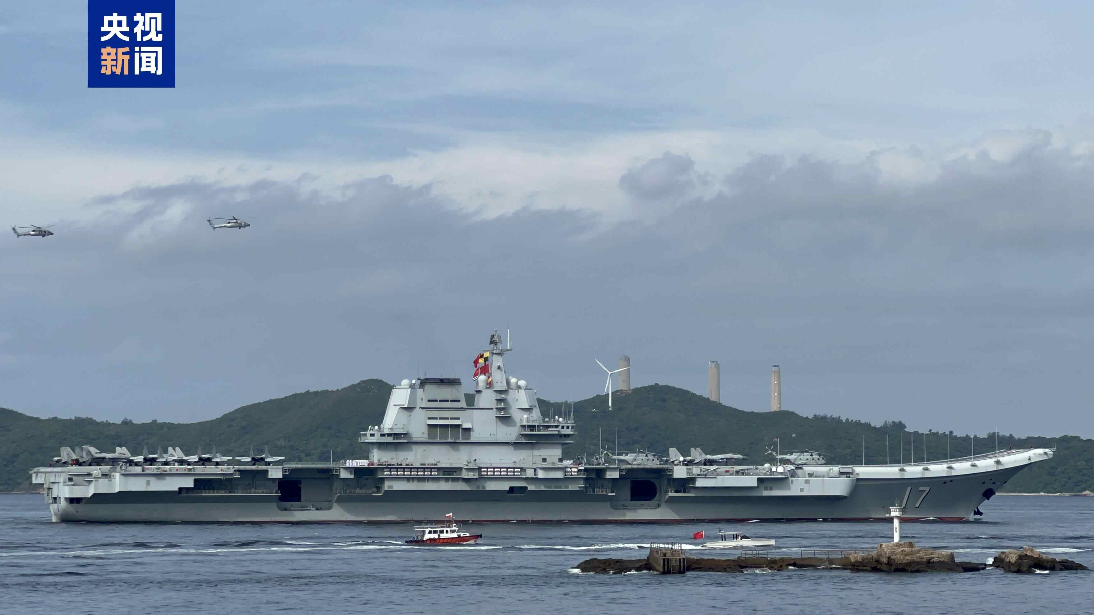 7月3日上午,中国人民解放军海军山东舰航母编队抵达香港海域。
