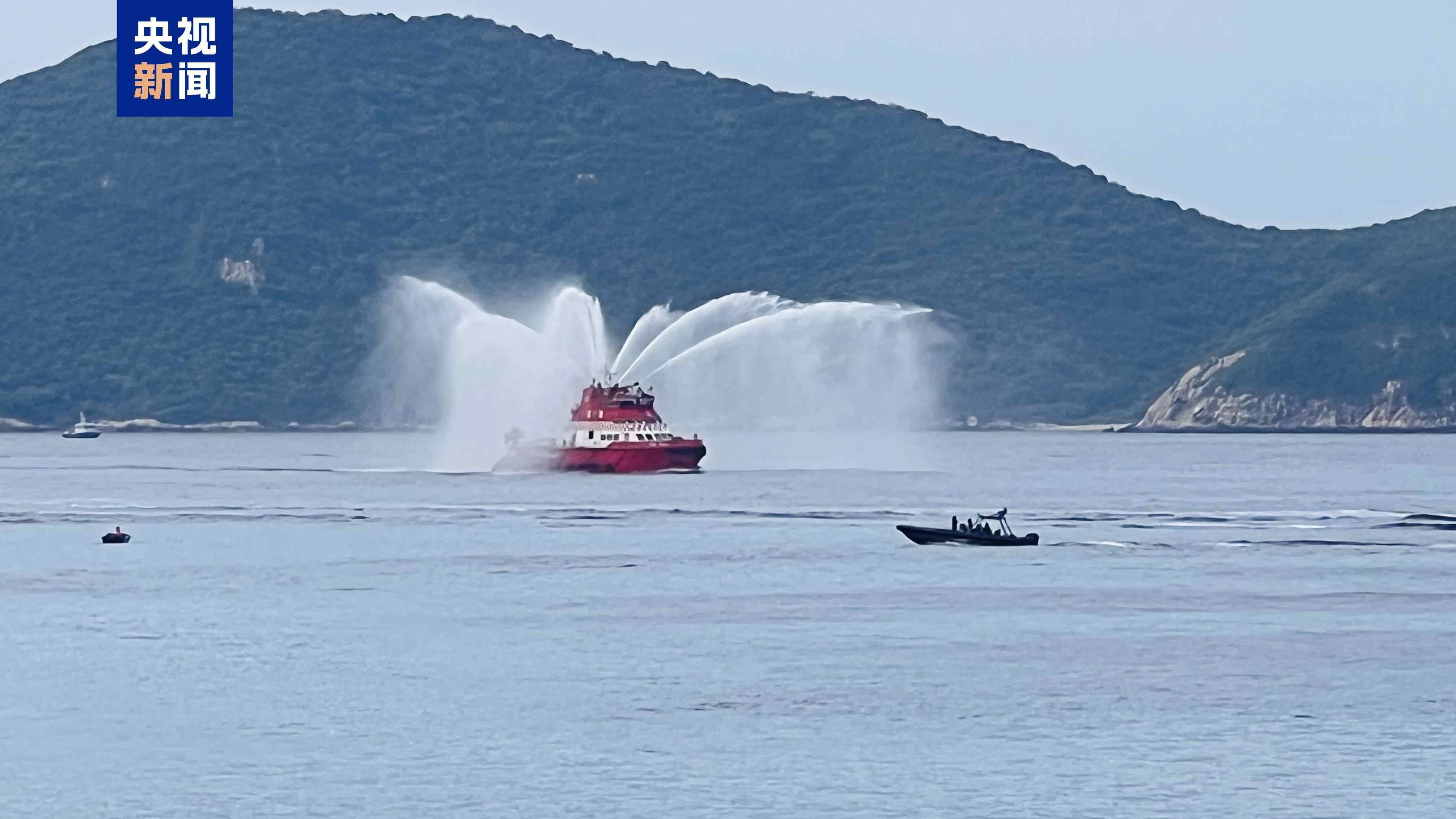 在海上,特区政府消防船派出了“水门礼”欢迎编队;在空中,特区政府伴飞直升机全程现场直播编队进港实况;在岸边,民众隔着海向来访的海军官兵挥手致意。海陆空全方位的热情!