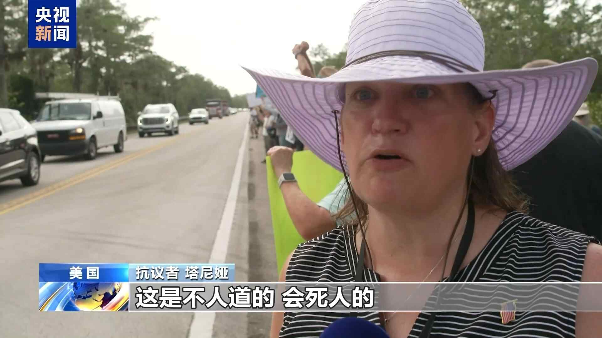 抗议者塔尼娅:第一,他们怎么能在飓风季把5000人关在佛罗里达州的沼泽里?这是不人道的,会死人的。第二,从财政上来讲太不负责任了。政府效率部赶紧来查一查,每年花4.5亿美元为了什么?这根本毫无意义,太令人生气了。