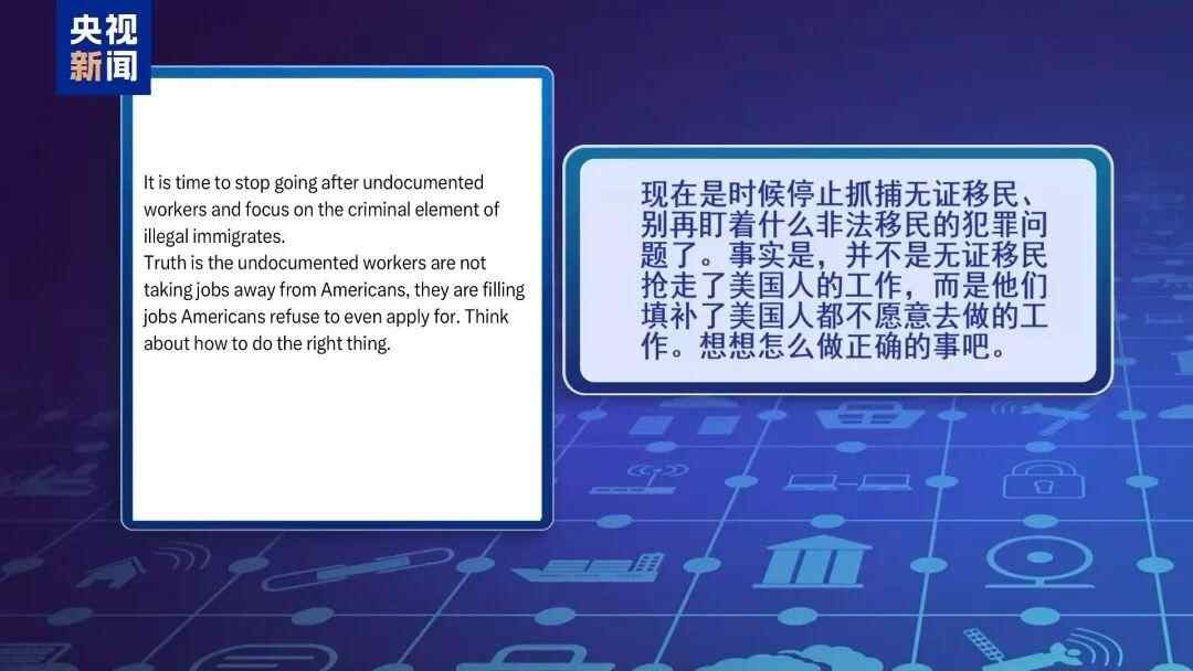 还有人说,“现在是时候停止抓捕无证移民、别再盯着什么非法移民的犯罪问题了。事实是,并不是无证移民抢走了美国人的工作,而是他们填补了美国人都不愿意去做的工作。想想怎么做正确的事吧。”