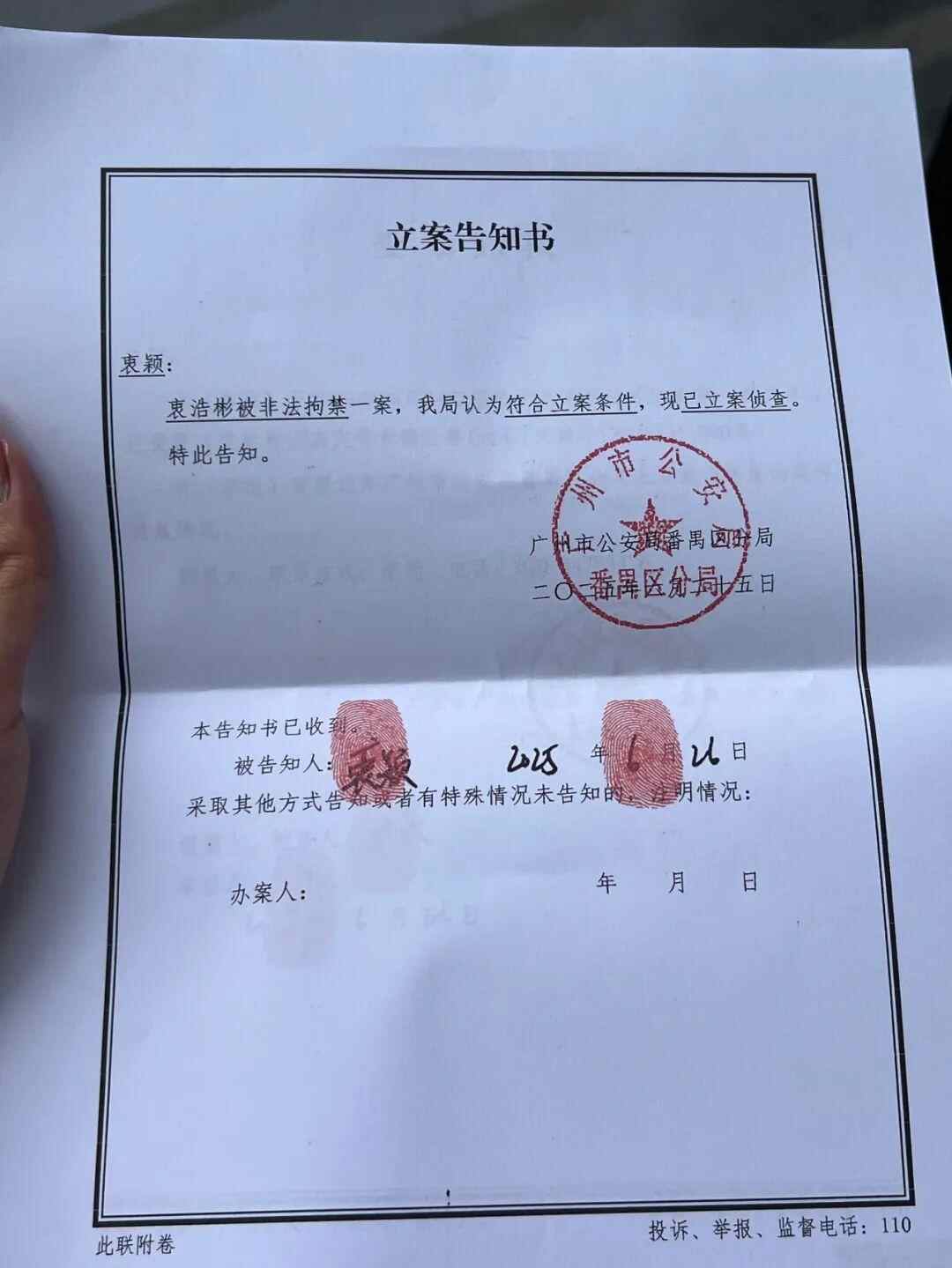 衷女士还提供了警方出具的立案告知书,警方已经立案侦查。