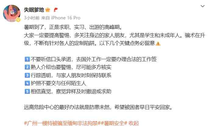 暑期到了,正是求职、实习、出游的高峰期。大家一定要提高警惕,多关注身边的家人朋友,尤其是学生和未成年人。骗术在升级,不断有针对各人的定制陷阱。以下几个关键点务必留意: