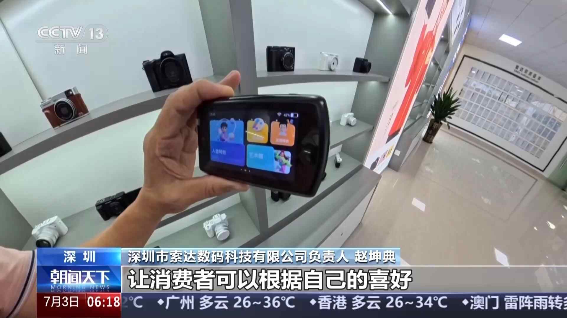 深圳市索达数码科技有限公司负责人 赵坤典:传统相机强调的是光学变焦,还有画质。我们现在引进AI的功能,让消费者可以根据自己的喜好做出各种各样的创意编辑。找到一条弯道超车的路子。
