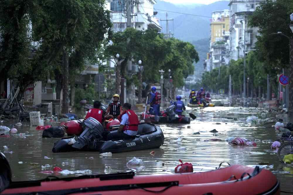 6月28日,救援人员帮助榕江县城内居民撤离。新华社记者 刘续 摄