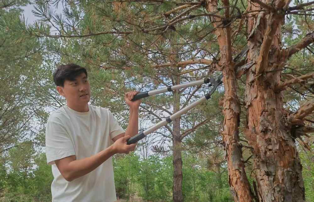 2017年,在爷爷的带领下,石健阳正式投身植绿事业。“过去沙害严重,老一辈治沙人最迫切的是要定住风沙,让地面先绿起来,所以当时的树种主要是生长快的杨树。”石健阳说,“几十年过去,杨树林老化严重,出现大面积枯死的情况。我们现在陆续对老化的林地进行树种更换,补种四季常青、生命周期更长的樟子松,目前已经补种了5万亩。”