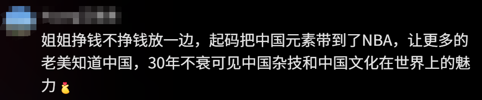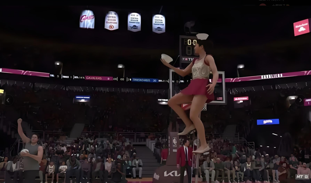 不少观众特意挑选有她出场的场次,宁可不上厕所也要观看她的中场表演。有球迷说:“她的顶碗技术,比库里的三分球还精湛。”甚至在2K24游戏里,也有她的身影。