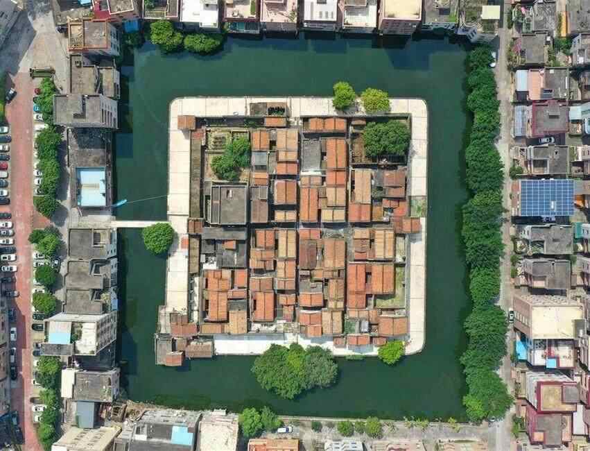 护城河、围墙、堡垒楼、逃生井……这座如世外桃源般宁静而神秘的防御型古堡便是明末清初所建,已经有400多年历史的逆水流龟村堡。四水围城的逆水流龟村堡,只有南面一条小桥与外界相连。走进其内,深壁固垒间的古民居、古巷陌、古井古树,让这座集军事学、仿生学与岭南建筑学一体的“迷你型”城池,蕴含了先人无穷的智慧,更是一座颇具特色的岭南水乡古村。