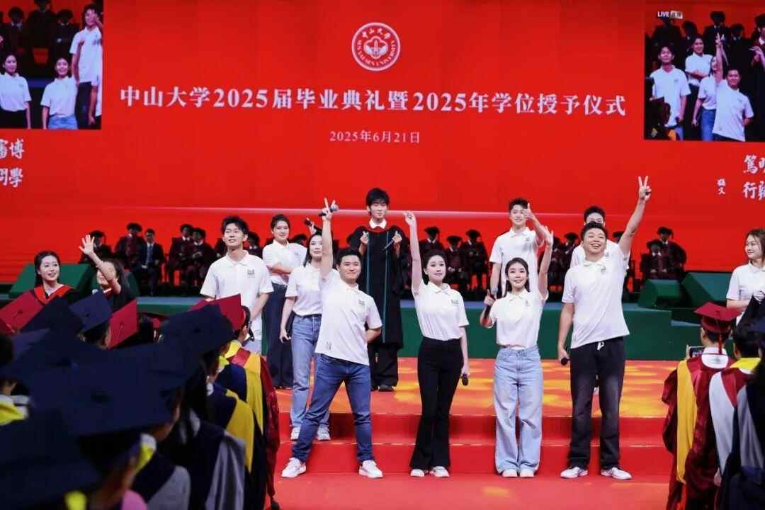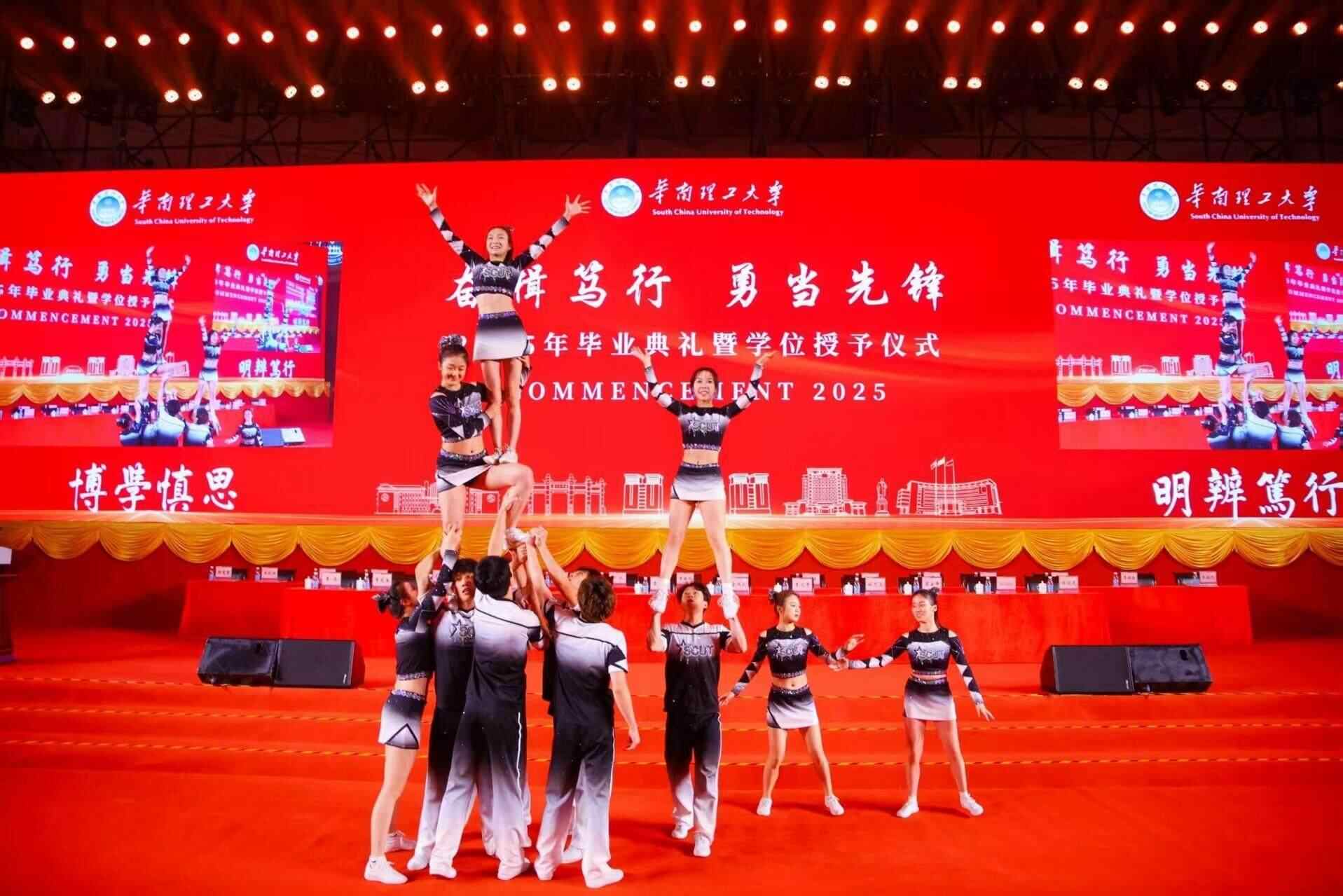 在今年华南理工大学的典礼上,来自艺术学院、体育学院、学生艺术团合唱团带来歌曲、啦啦操、剑舞等表演,向1.2万余名毕业生送上隆重祝福——愿他们在人生的海阔天空中,争做劈波斩浪的哪吒,让青春在奋进中,永远奔涌如鼓点。
