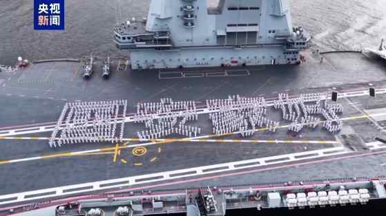 当天上午,中国人民解放军海军山东舰航母编队抵达香港海域,山东舰官兵们在甲板排出“国家安好”字样。