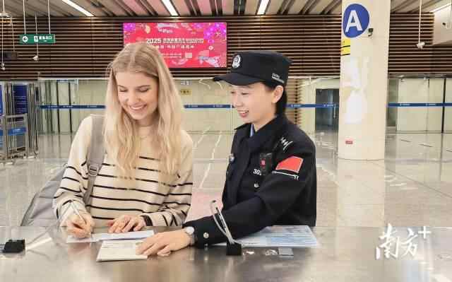 皇岗边检站民警热情帮助外国旅客填写入境卡。