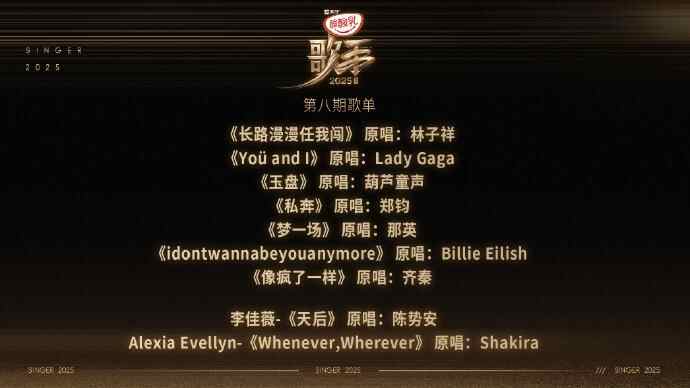 7月3日,据@湖南卫视歌手消息,《歌手》第八期歌单正式公布: