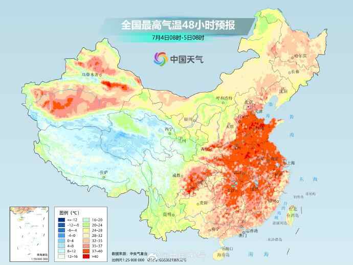 今日(7月4日)高温范围将达到本次过程最大,囊括华北南部到华南中北部的大片区域。而且随着副热带高压引导闷热潮湿的夏季风北上,华北中东部、东北中南部体感也会非常闷热。