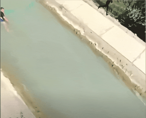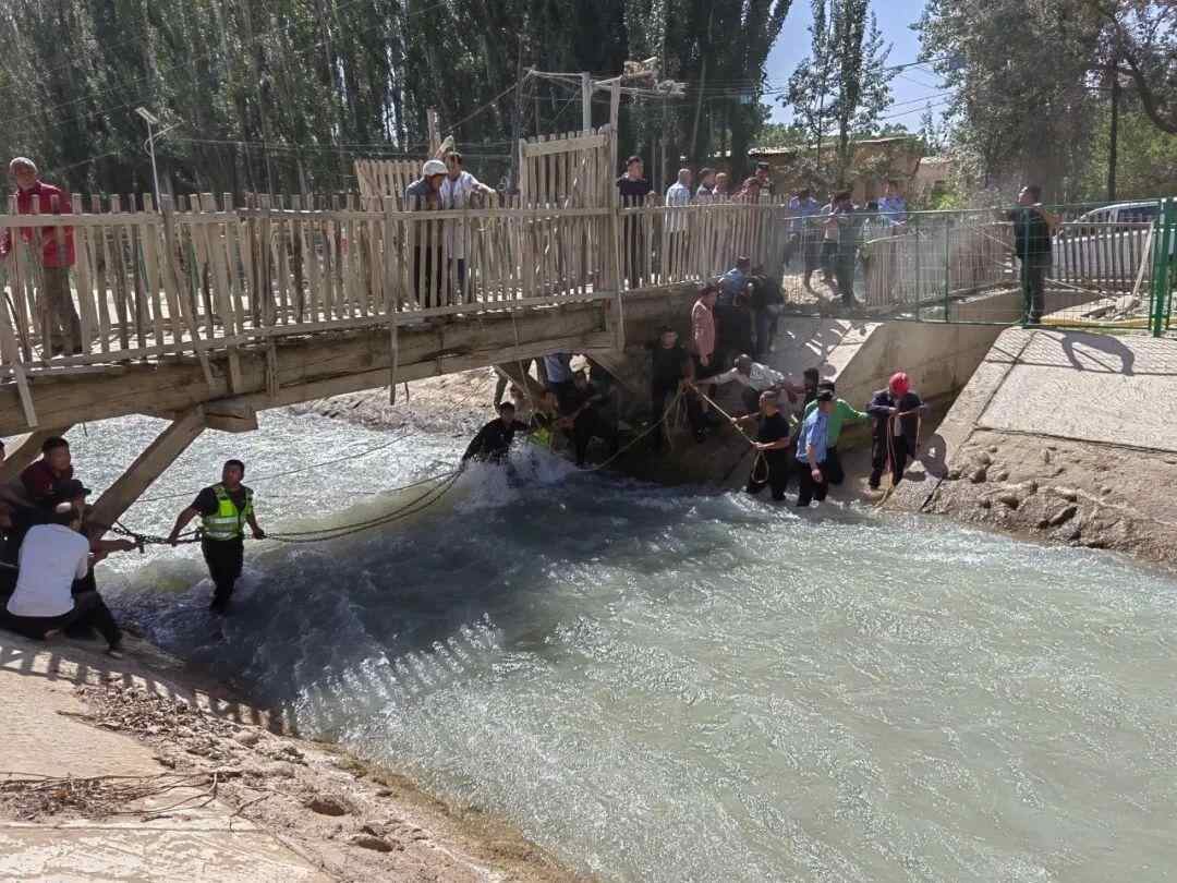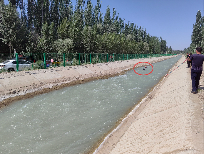 只见水渠中一名落水者
