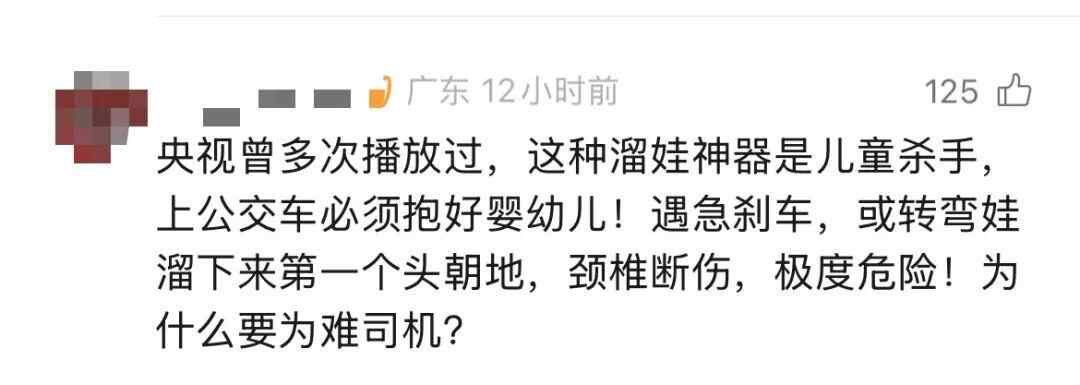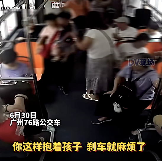 其他乘客也表示:“司机不敢开车了”“坐下来好过啦”“你这样抱着孩子,刹车就麻烦了”。