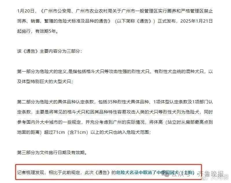广州发布通告,危险犬名录中取消了中华田园犬(土狗)。