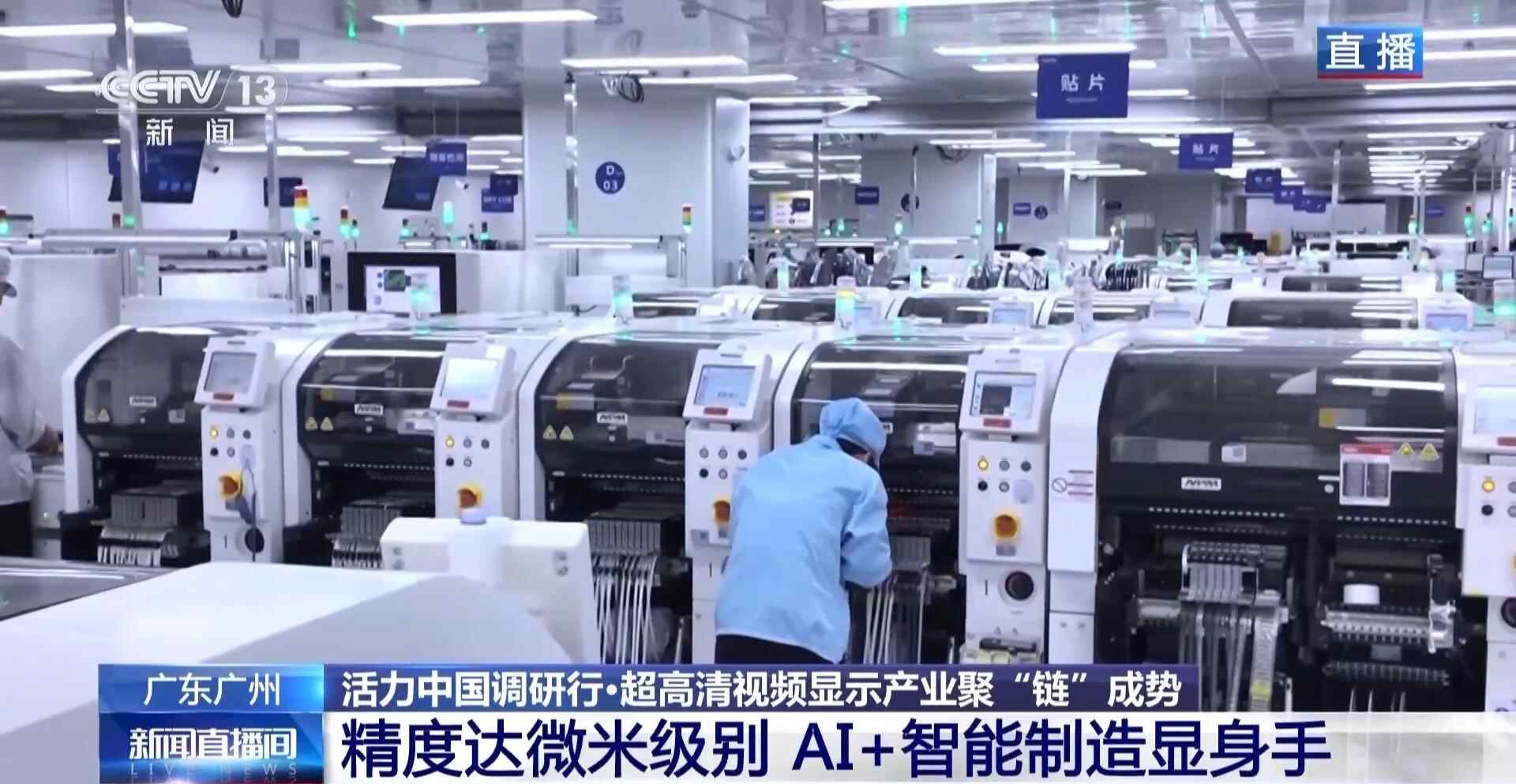 超高清视频显示产业是广东十大战略性支柱产业之一。作为这个产业发展试验区的核心区,2024年,广州超高清视频和新型显示产业实现产值超2000亿元,同比增长近8%,超高清面板、显示模组、偏光片、超高清电视板卡产能居全国前列。活力中国调研行,总台记者带你走进广州的新型显示智能制造工厂。