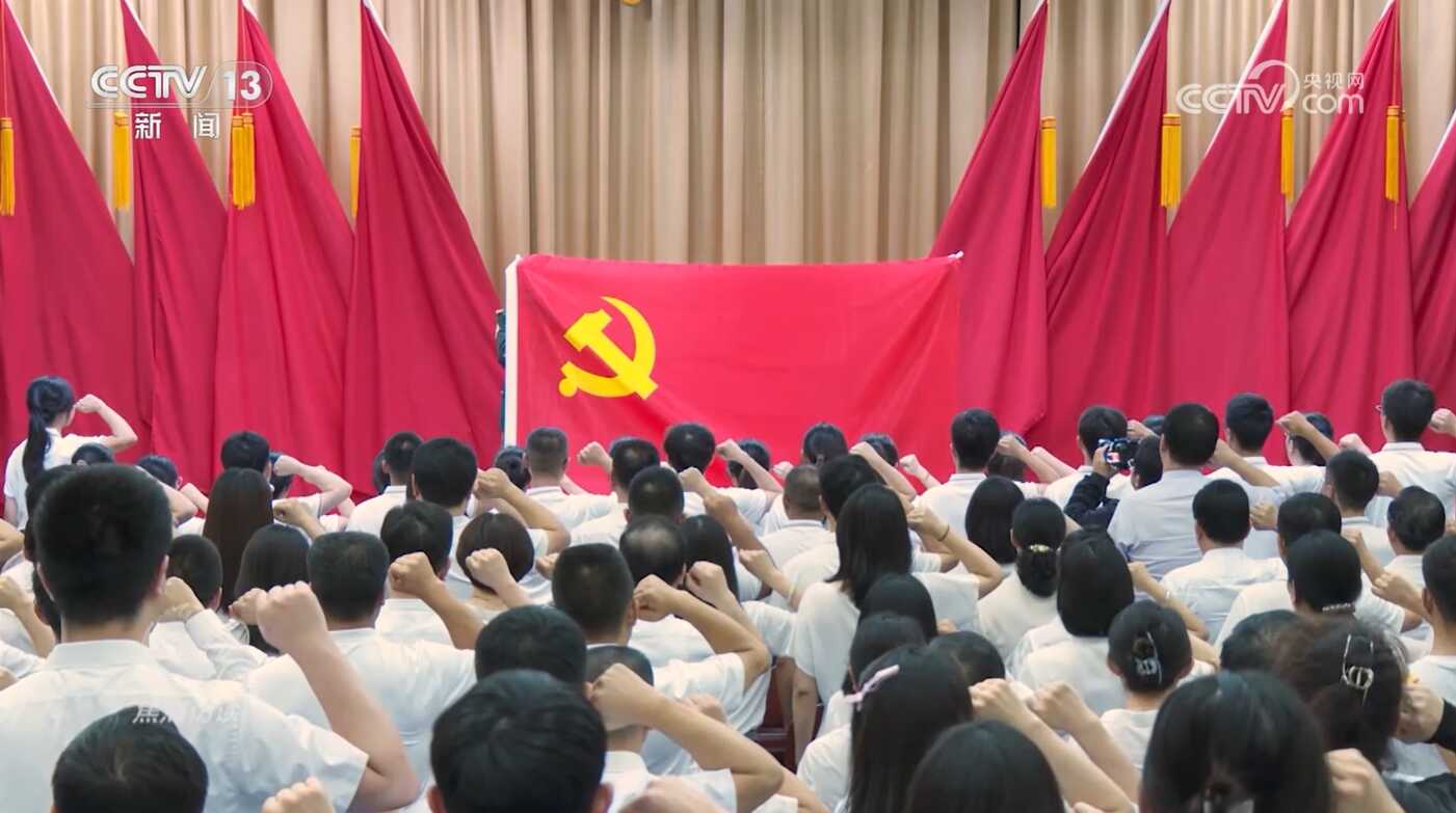 在中南财经政法大学,一批新党员正在参加入党宣誓仪式。从诞生之初仅50多人发展到如今拥有一亿多名党员,每十几人中就有一名党员,中国共产党实现了“星星之火”的“燎原之势”,创造了政党组织发展的奇迹。