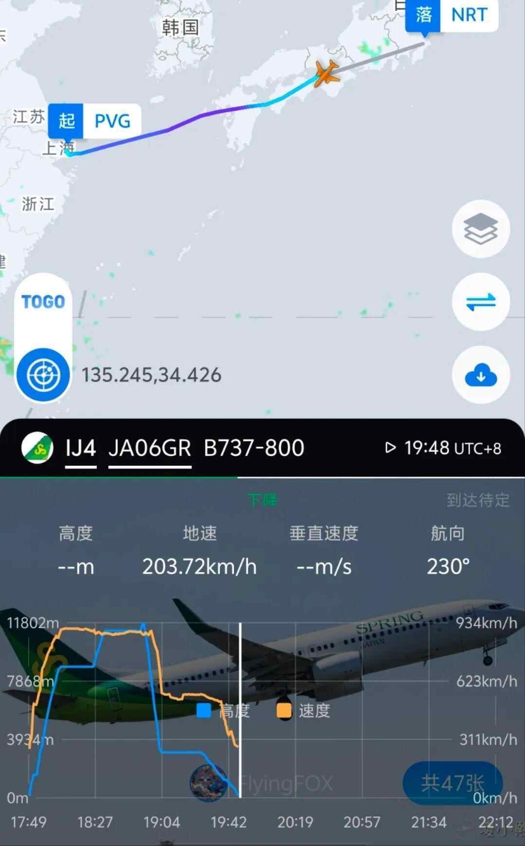 相关飞行APP显示,该航班于6月30日17时49分从上海浦东正常起飞,原定于当地时间21时47分到达东京成田机场。