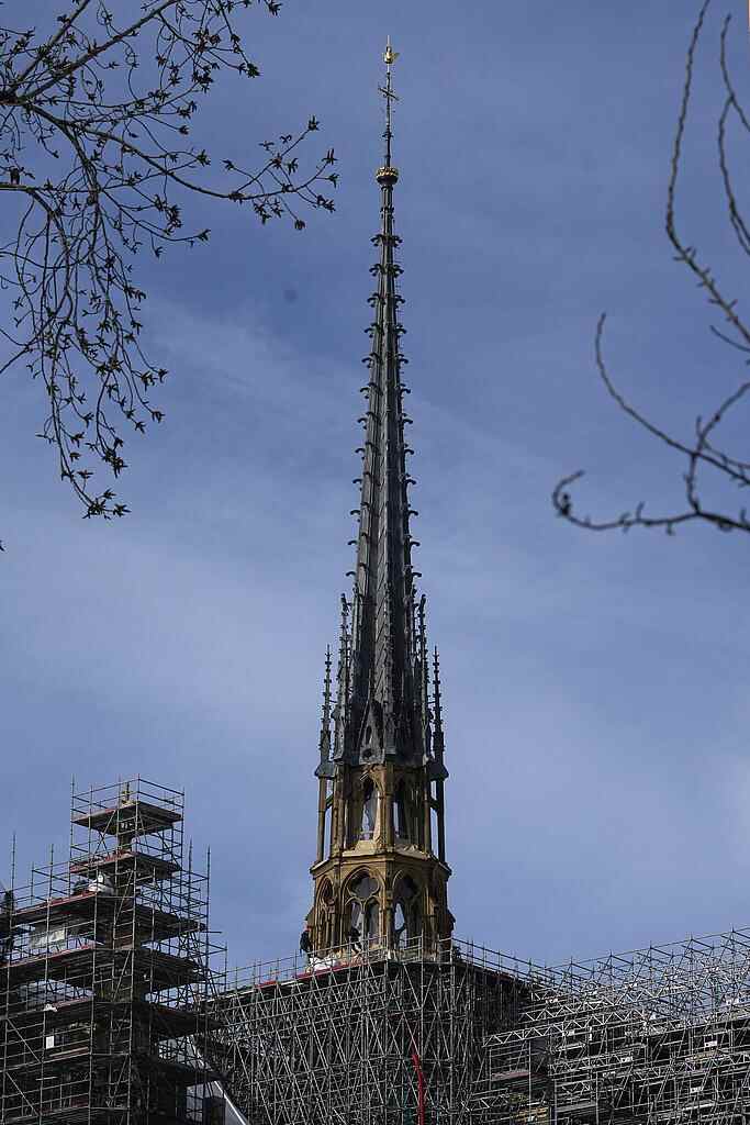 巴黎圣母院始建于12世纪,是法国最具代表性的古迹之一。2019年4月15日,巴黎圣母院的屋顶和尖塔毁于火灾,但主体建筑得以保存。2020年,巴黎圣母院大火一周年之际,法国总统马克龙承诺5年内完成巴黎圣母院修复工作。尖塔的修复工作包括加固钟楼和观景台等。