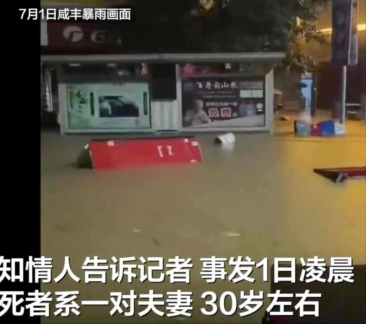 7月2日,湖北咸丰有网民发视频称,她姐姐和姐夫暴雨时疑因街道水中有电触电身亡。