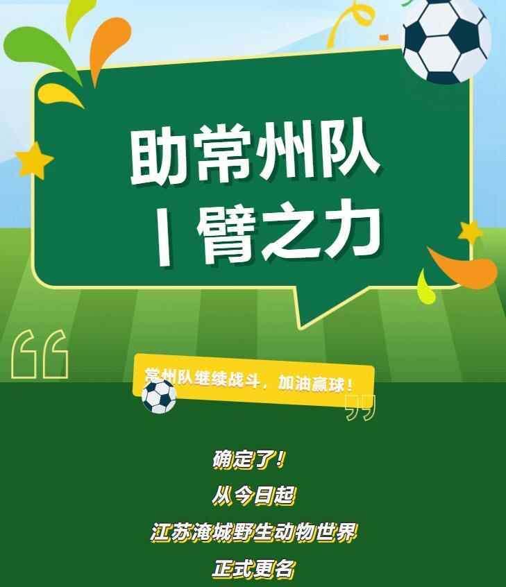 7月2日,江苏淹城野生动物世界官方发布改名公告称,其推广名正式变更为常州赢球野生动物世界。