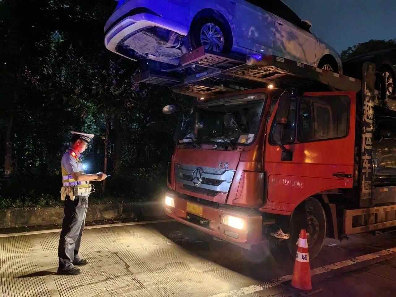 交警指出,车辆超限超载对安全行车造成极大危害,可能诱发重大道路交通事故,严重危及人民群众的生命财产安全。今年4月以来,增城交警部门共查处轿运车辆违法27宗。据悉,接下来增城交警、交通部门将持续开展常态化联合执法行动,严厉打击超长超高超宽、非法改装等交通违法行为,“发现一宗,查处一宗”,形成严管严治氛围,全力净化辖区道路交通运输环境。