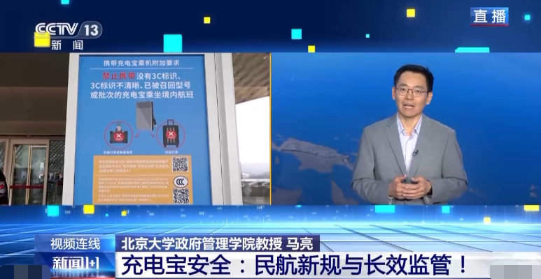 北京大学政府管理学院教授 马亮:做好相关的配套服务,一方面要去加强监管,让安全能够得到保障。另外一方面,我们能不能有些提前量,有一些更好的服务,不光是机场提供这样一些服务,航空公司在乘客去订票值机的时候,能不能弹出一些提醒,让大家去看充电宝是不是安全的,相关部门能不能给大家提供一些简易的居家自测或核验的机制,让大家知道手中的充电宝是不是安全,这些方面的服务看似很小,但是对于乘客来讲能够得到更大的理解和支持,对于做好安全监管也是非常重要的。