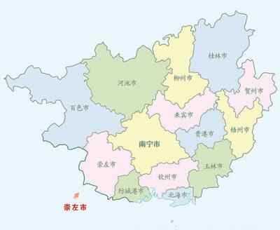 崇左市是广西壮族自治区最年轻的地级市。作为中国通往东盟最便捷的陆路大通道,崇左外贸总量、出口总量连续多年排名广西首位。崇左文化旅游资源丰富独特,全市拥有46家国家A级旅游景区,包括亚洲第一大跨国瀑布——在世界上仅次于南美伊瓜苏、非洲维多利亚、北美尼亚加拉瀑布的中越德天(板约)瀑布;世界文化遗产左江花山岩画;中国九大名关之一友谊关等。