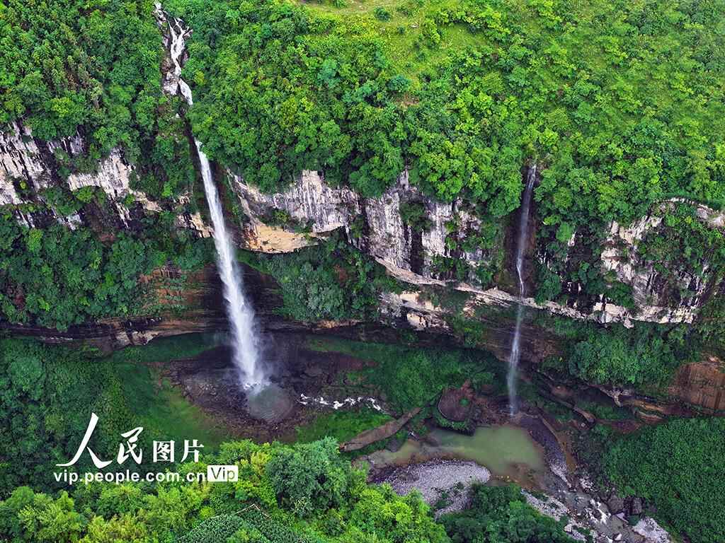 2025年6月30日,雨后的湖北省恩施大峡谷云龙河地缝,瀑布从险峻陡峭的悬崖一泻而下,气势如虹,蔚为壮观。张远明摄(人民图片网)