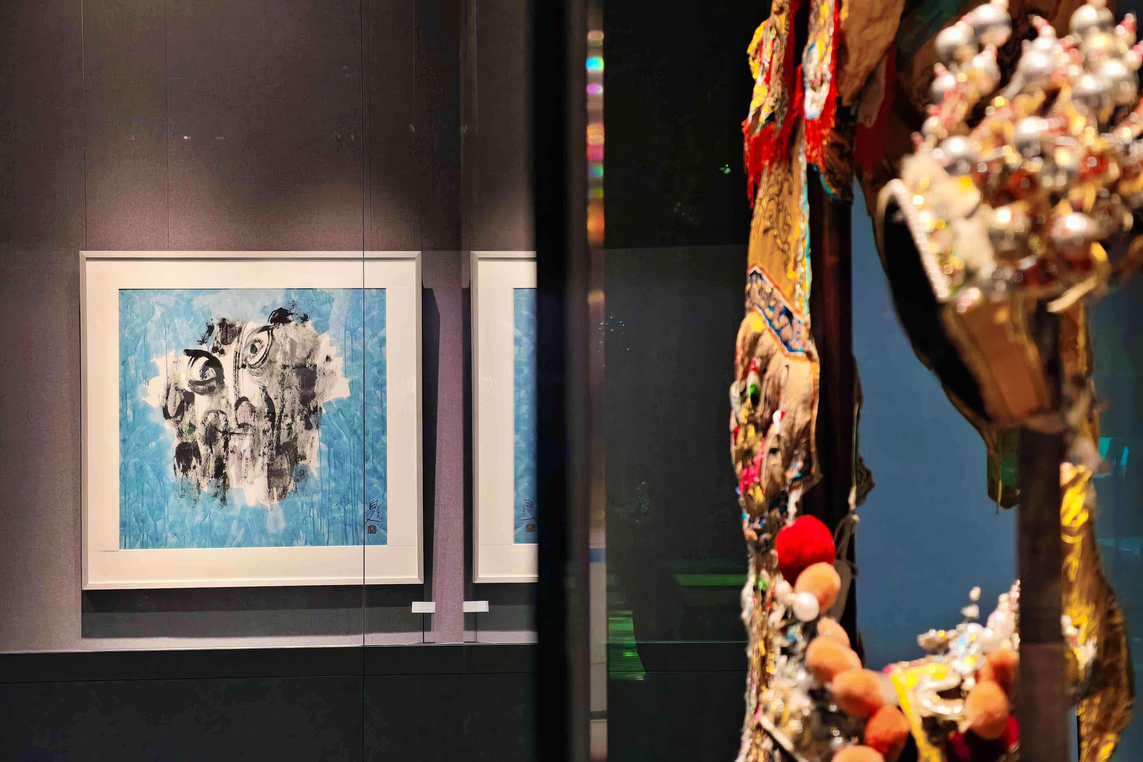 在展出的近两年新作中,许固令的脸谱画作品更趋向于以抽象的表现手法创作。
