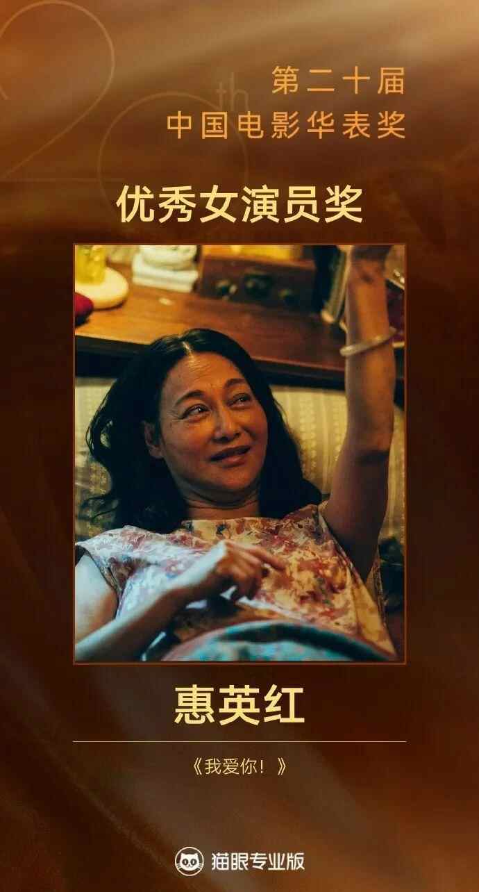 据此前报道,4月27日晚,第二十届中国电影华表奖揭晓,65岁的惠英红凭借电影《我爱你!》获优秀女演员奖,她是第一位获此殊荣的中国香港女演员。