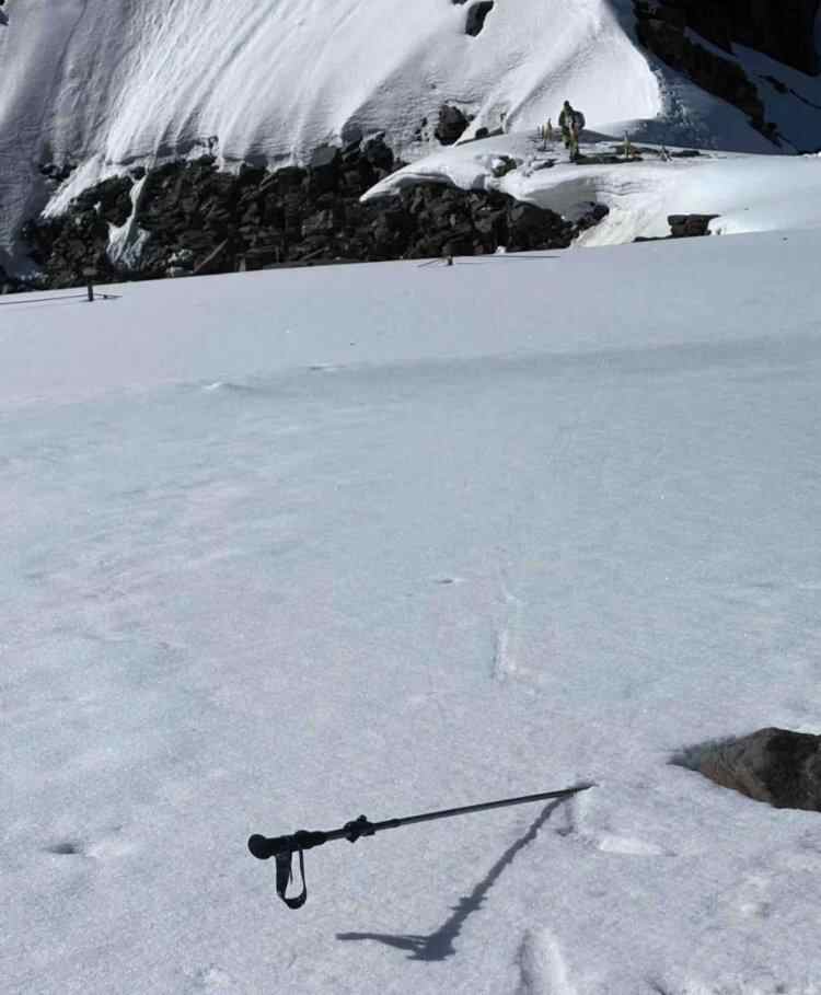陈明说,事发时间为7时30分左右,事发地点在“二峰垭口上面十几米”。向导去拉男子,但没拉住,“向导也摔了,但是向导刹住了”。陈明说,遇难男子“用了两根登山杖”,还听到男子在滑坠时喊“救命”。