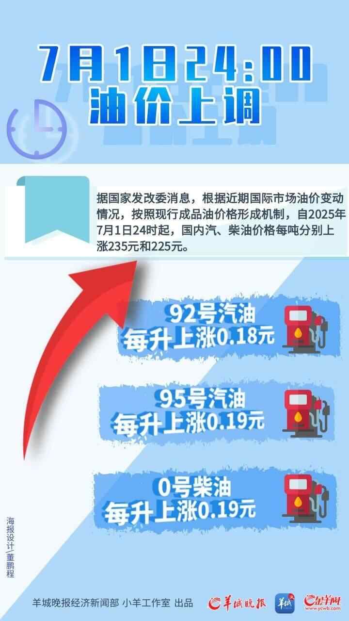 7月1日,羊城晚报记者从国家发改委官网获悉,根据近期国际市场油价变化情况,按照现行成品油价格形成机制,自2025年7月1日24时起,国内汽、柴油价格(标准品,下同)每吨分别上调235元和225元。折合升价92#汽油、95#汽油、0#柴油分别上调0.18、0.19、0.19元。这意味着国内成品油零售限价自6月份以来迎来“三连涨”。
