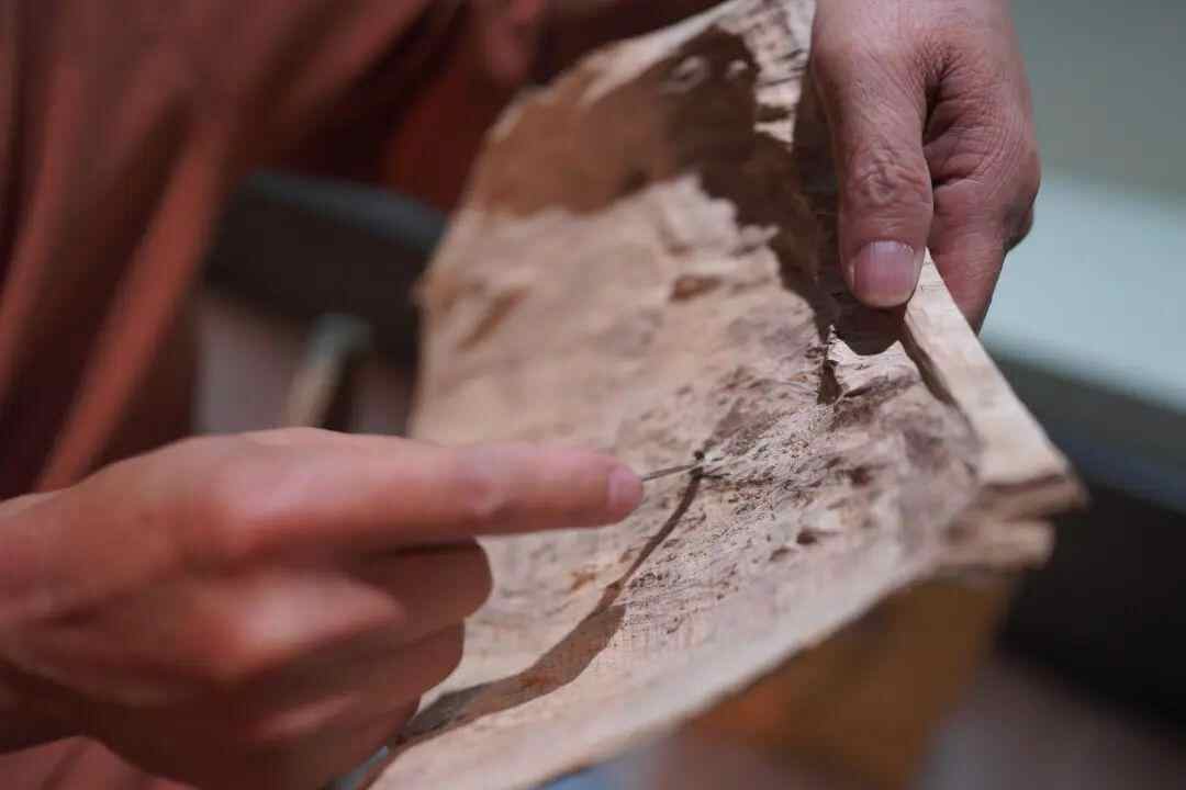 莞香千年前便择中了莞邑大地。东汉时期,岭南人就曾培植沉香。一炉好香,从培植到品香,需历经移植、折枝、开香门、采香、理香、拣香、窨香、合香等30余道工序,时间跨度长达十余年甚至更久。莞香树本无香气,却从“开香门”后形成的“伤口”中结出独有的芳香。