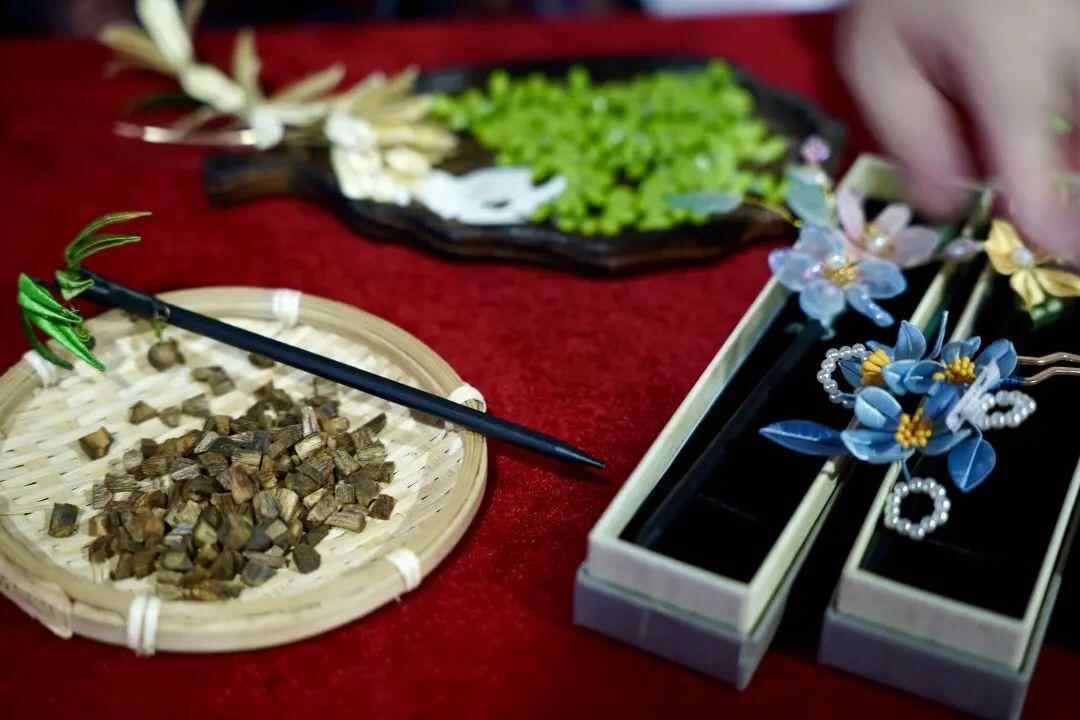 与非遗缠花技艺结合的沉香珠发簪。羊城晚报·羊城派资料图