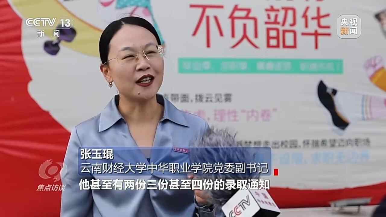 云南财经大学中华职业学院党委副书记 张玉琨:我们很多学生现在有两份、三份甚至四份录取通知,但是会挑挑拣拣,总是想要找到更好的,就会观望。并不是找不到工作,而是怎么样找到自己喜欢的,又跟自己想求职的地点相吻合的。