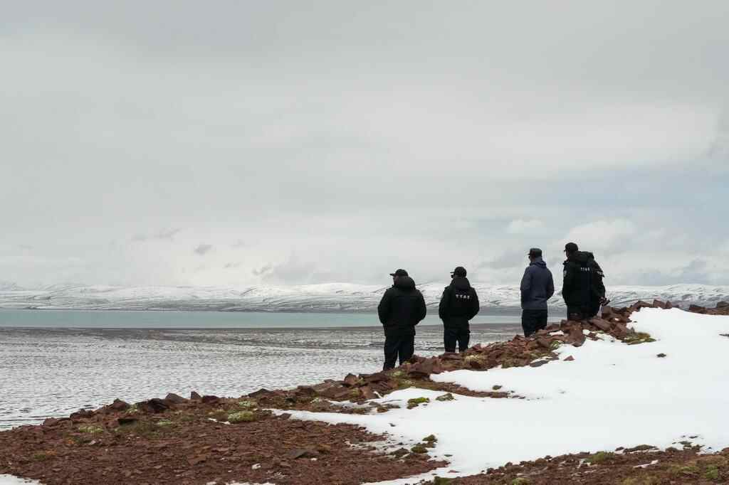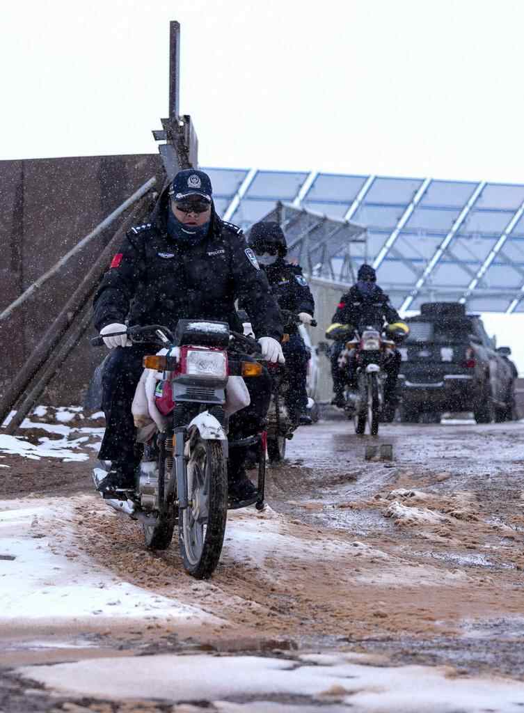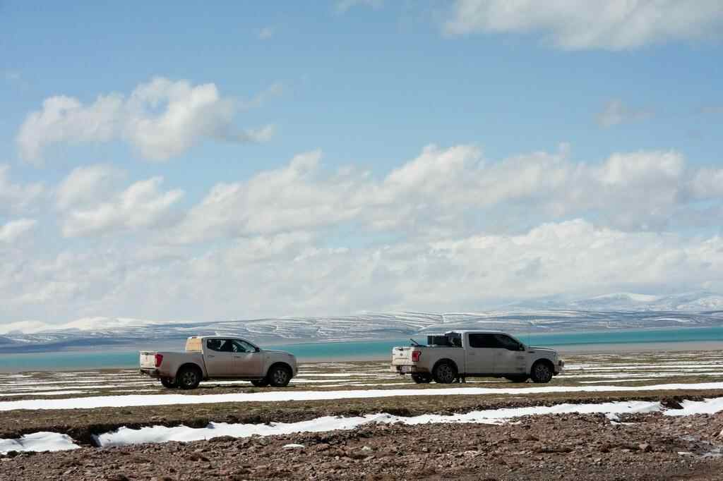 巡山队员在可可西里卓乃湖附近巡护(7月3日摄)。